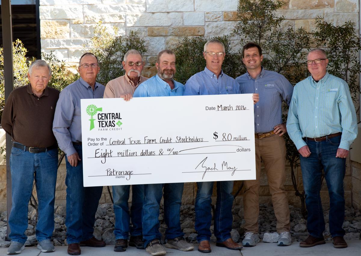 Your cash patronage distribution reduces the cost of doing business with Central Texas Farm Credit — the cash dividend lowers your effective interest rate.